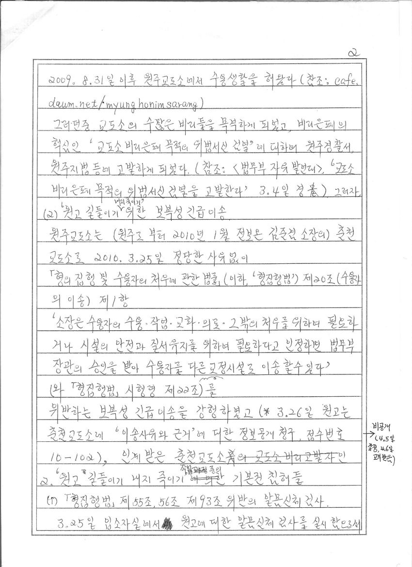 소송의(<춘천지법 2010구합724>, <춘천지법 2010가소7208> 등 포함) 목적 또한 교도소와 법무부가 어떻게 위법행위를 저지르는