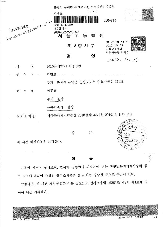 2. 판사년놈들의 기소청탁: 이용훈, 신성식, 나경원+김재호