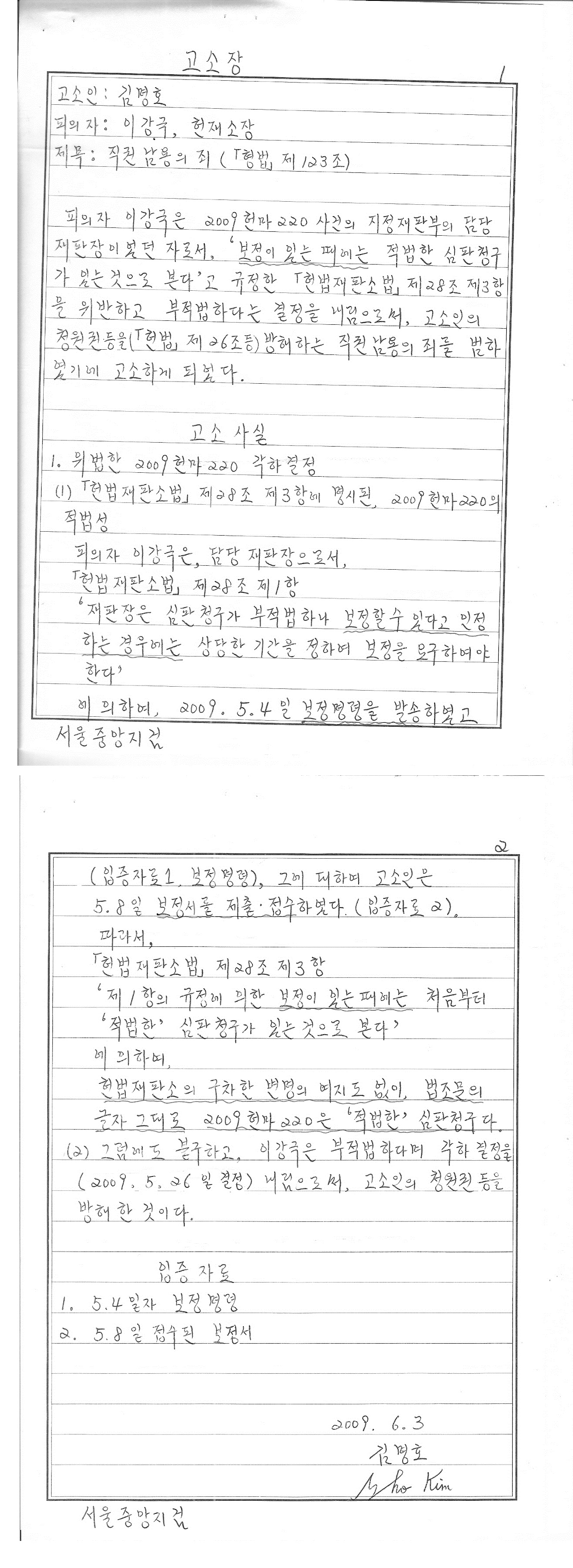 용산사건 담당 [형사소송법] 제262조 위반, 직권남용