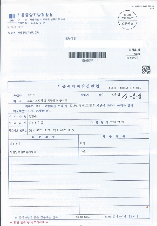 이준엽 검사, * 이 놈은 공무원비리 묵살 담당인 모양. 동작구청 건축과 직원 고발건에 대해서도 비리증거에도 '증거불충분'. 박상용 검사도 합세 |