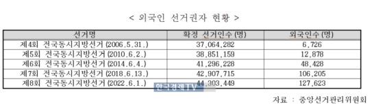 2022년 전국동시지방선거에서 외국인이 12.7만 명이 투표했는데,