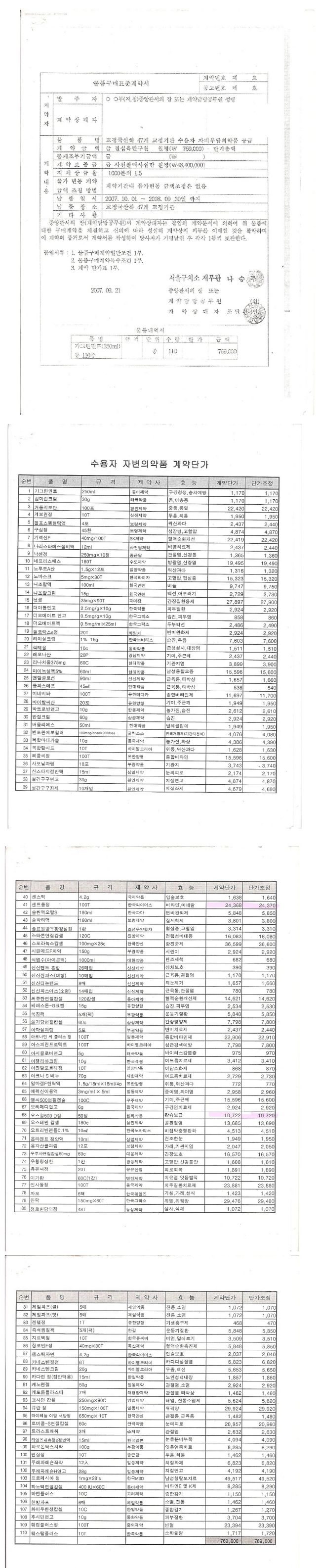 | 교정시설 구매 품목, 의약품 가격과 식단표 |