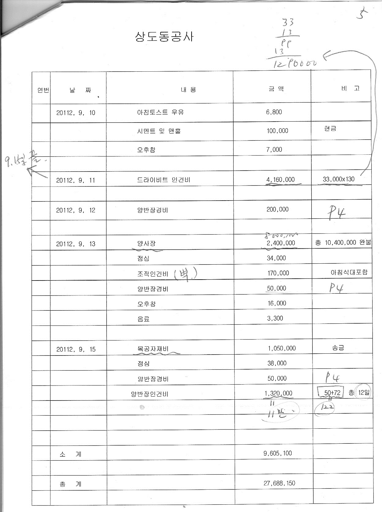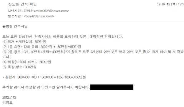 <결론>: 지금까지 만나 본 건축관련 인간들은 하나 같이 사기꾼, 도둑놈들. 눈에 불을 키고 지켜서 있어도 자재 값 속이고 빼먹고 자재 싼 것으로 바꿔치기 하는 등 '눈 뜨고도 코 베인다'는 말을 실감하게 된다.(* 동작구청에서 위와 같은 비리가 있는 유병열을 민원 상담원으로 유지한다면, 그런 도둑놈들 키우는 것들이 공무원들이라는 결론을 내릴 수 밖에 없다.)