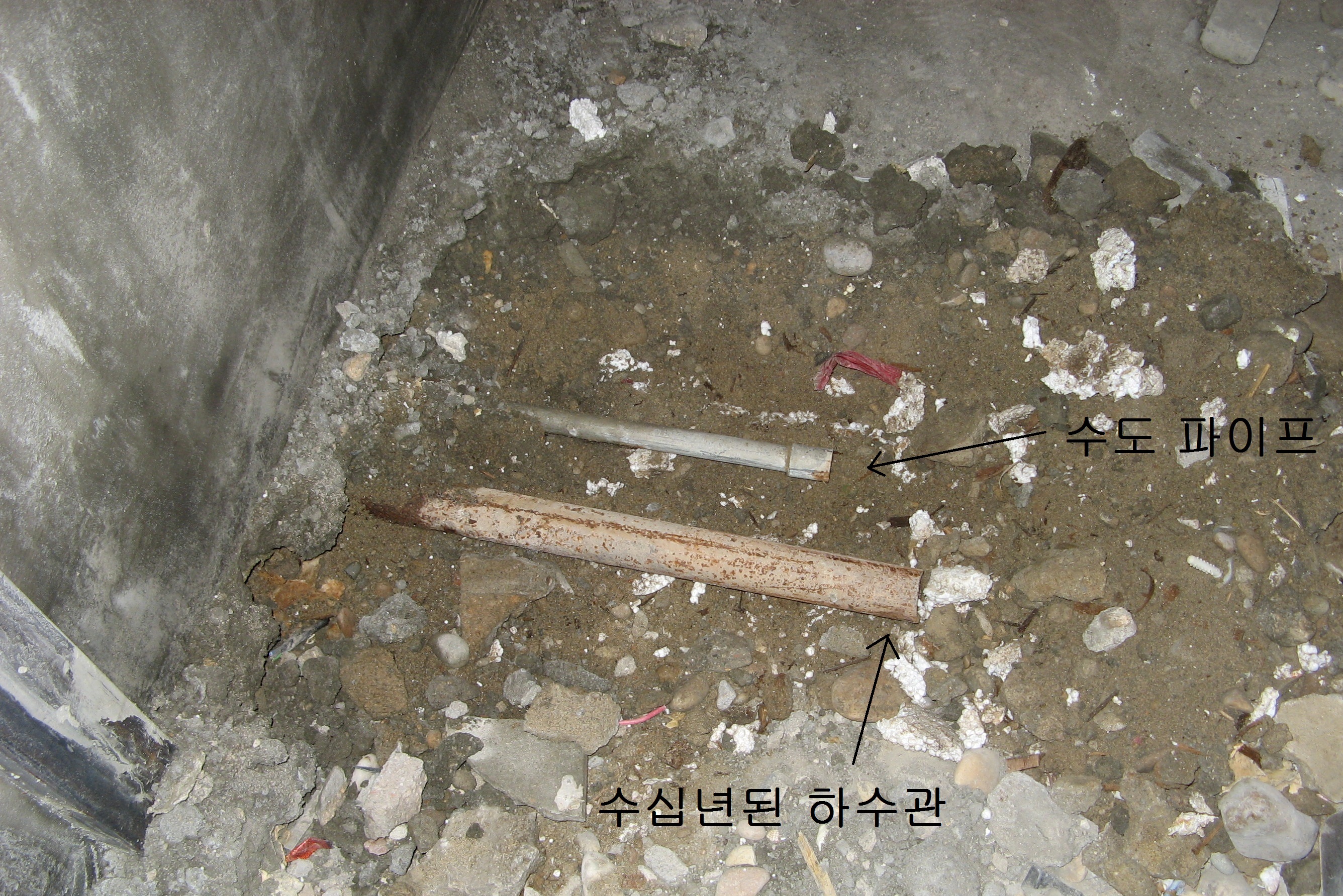 3. 하수구와 수도 시설을 위한 작업을 하였다기에 파 보니...(9.23일 사진), 수 십년된 수도 파이프와 관을 묻어 놓았던 것.