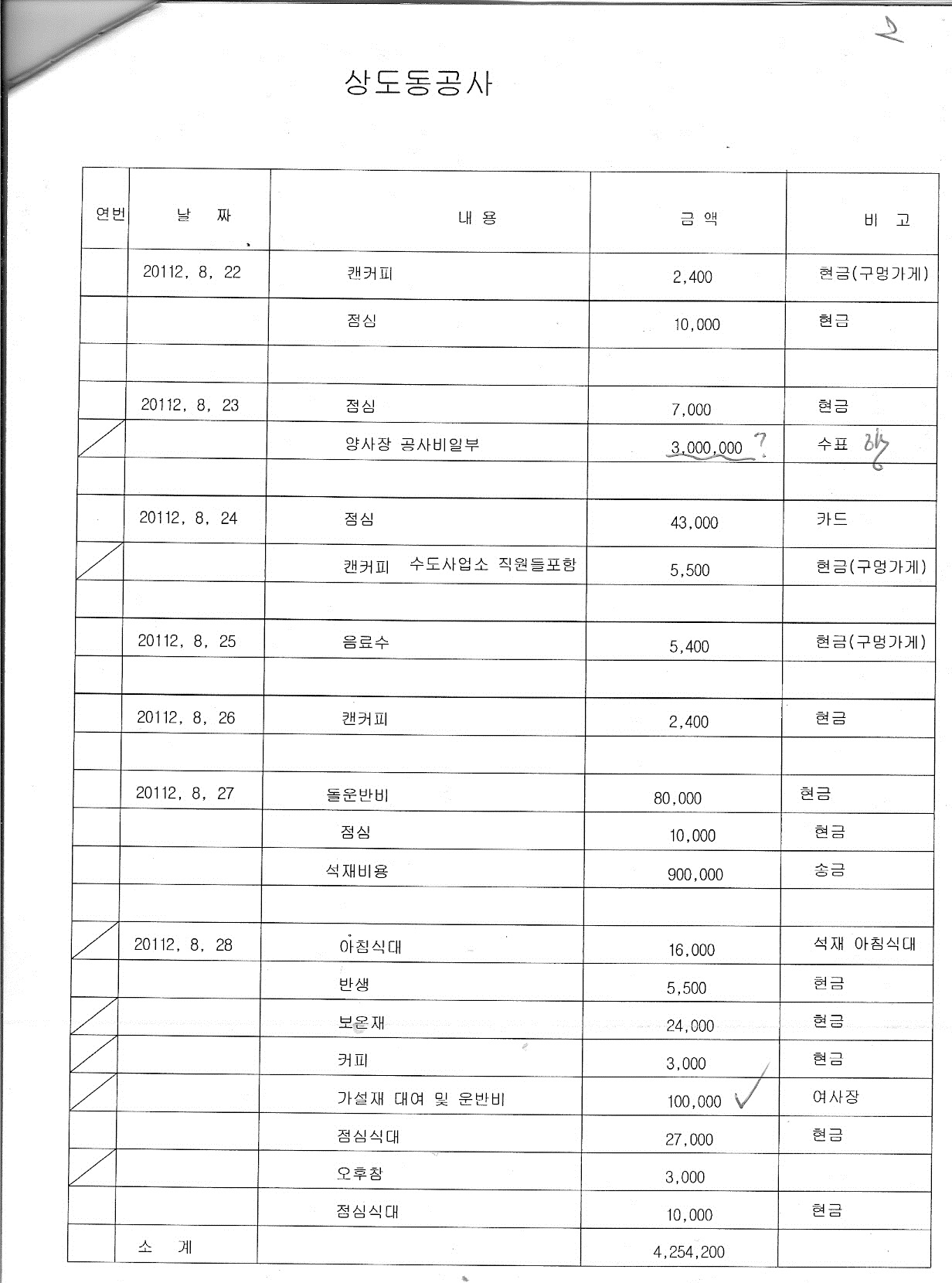 (2) 일당표와 일한시간 => 2명의 일당 x 1/2 + 잡역비(10%) 대강 계산하면