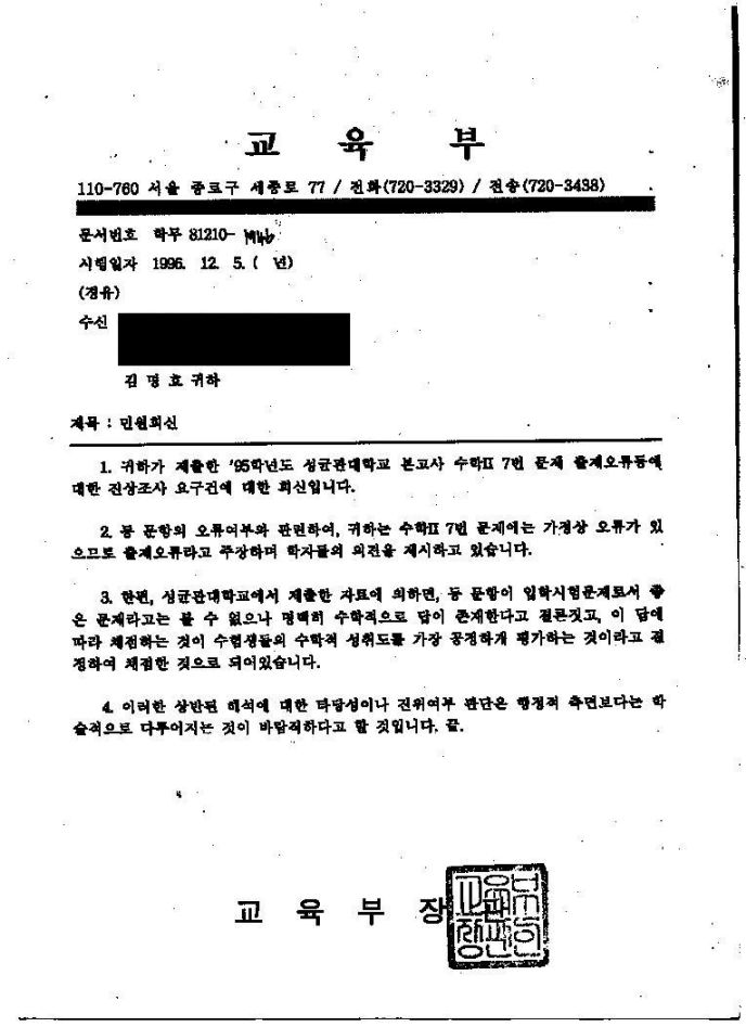 * 성대입시부정 은폐한 교육부 감사국에서 들은 잊혀지지 않는 말