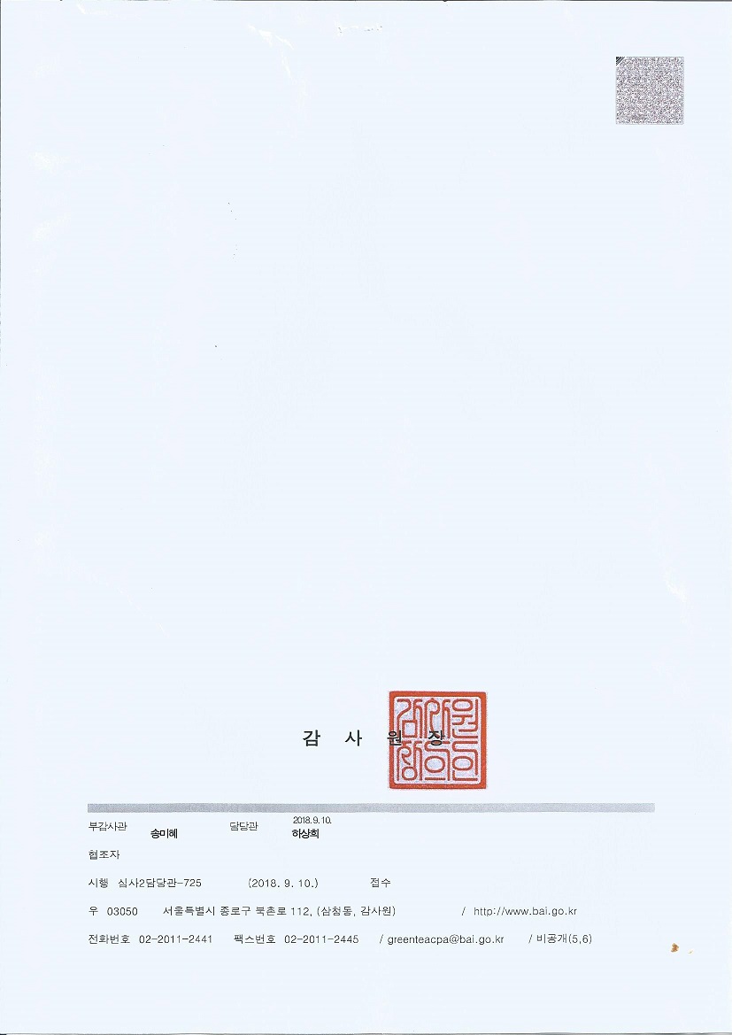 [2018.1.15] 감사원 심사 청구서 등기 제출(등기번호: 1415501359882)