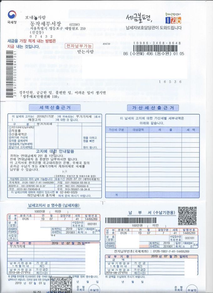 고발당하고서 보낸 꼬라지를 보라 => 부가가치세 고지서(2019.7.5 금요일 수령)