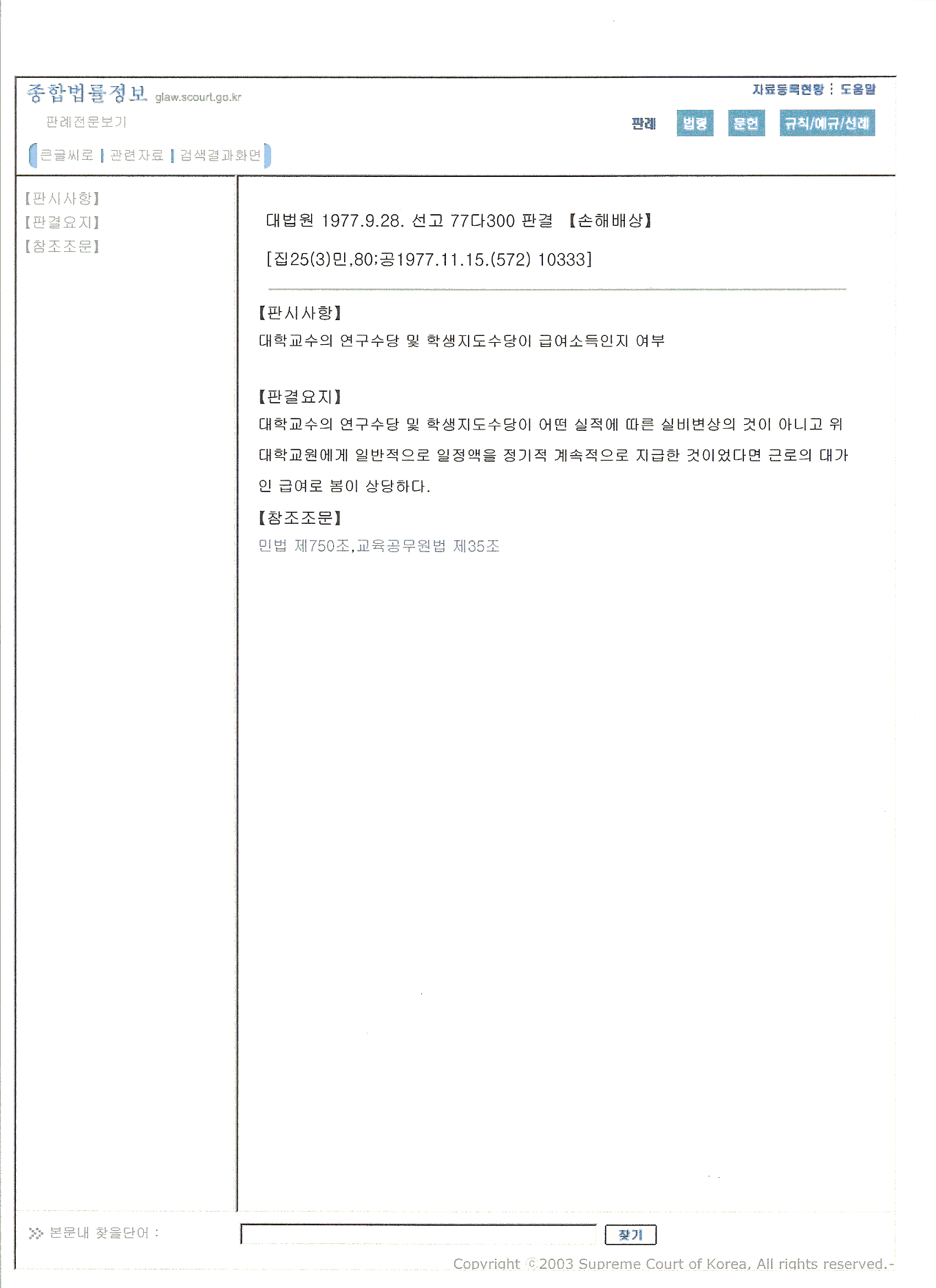 1977년, 대법원 판례집 vol 25 no. 3