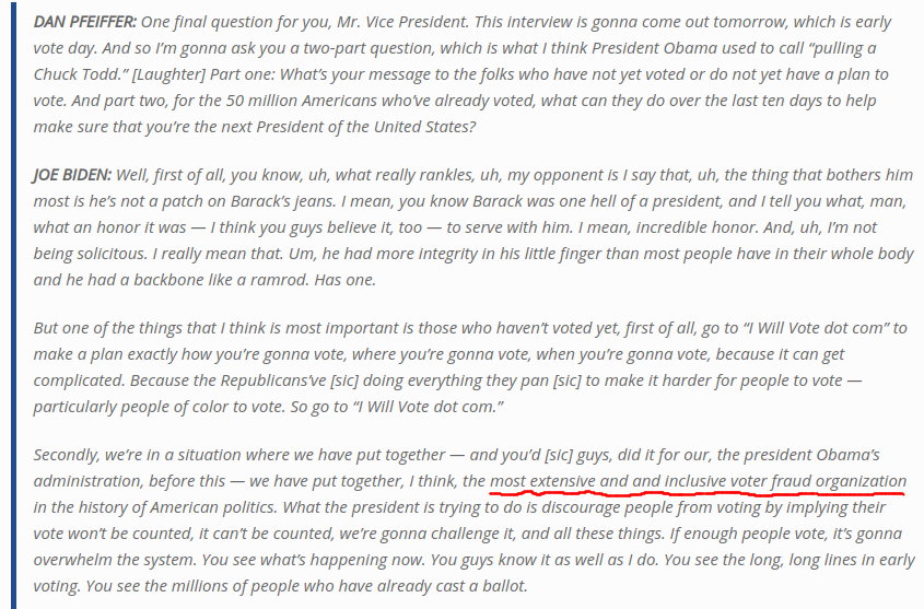 바이든, '선거 역사상 최강의 부정선거단 조직했다'...동영상과 방송 원고(20.10.25)