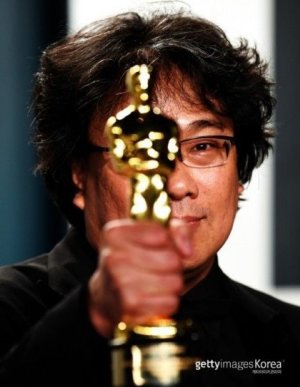 봉준호가 기생충으로 아카데미 받고 '악마 추종/사랑한다'는 답례 표시로 한쪽 눈 가린 꼬라지 봐라