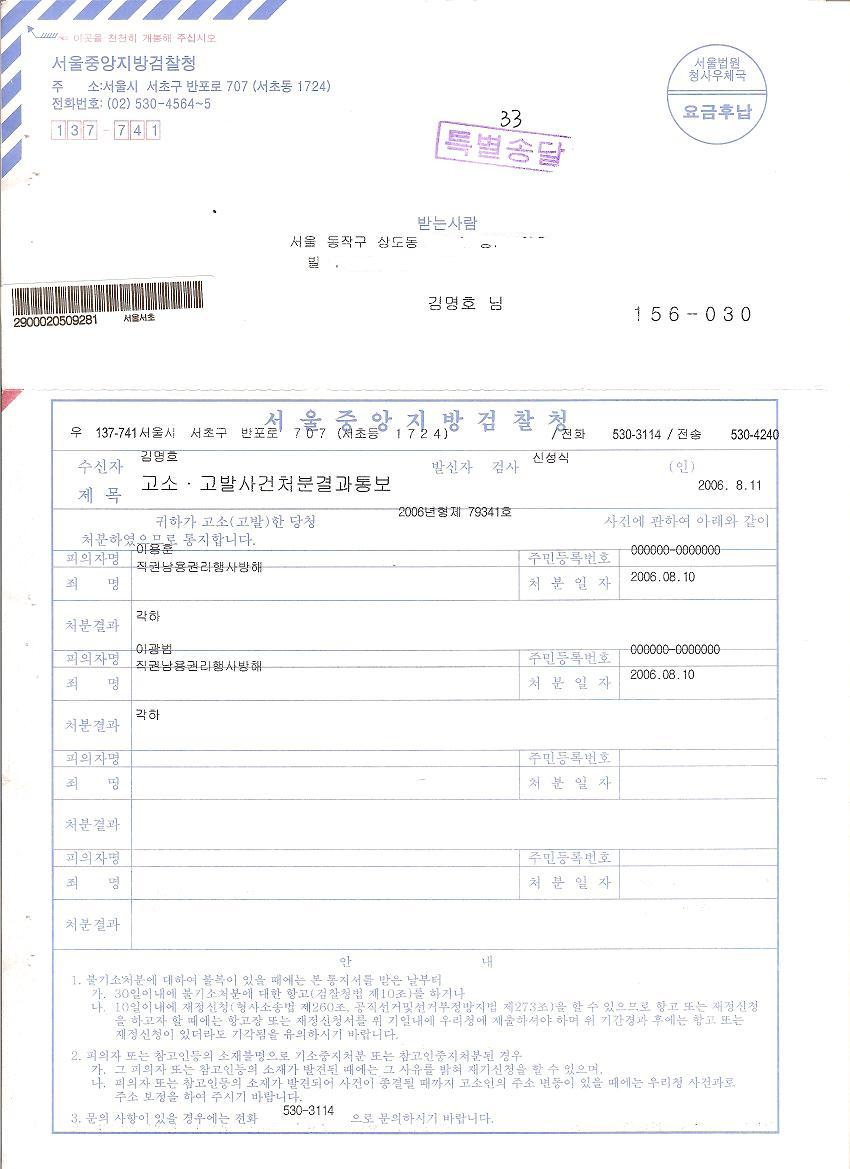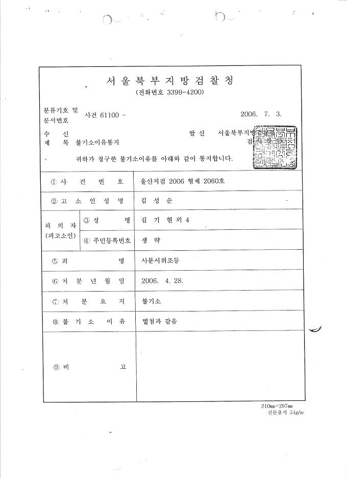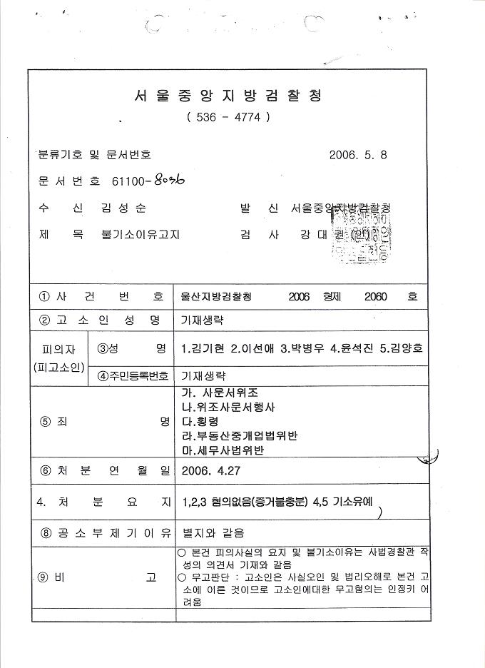 1. 이용훈, 이광범 허위공문서 작성 각하에 대한, 재정신청(2006재정38)
