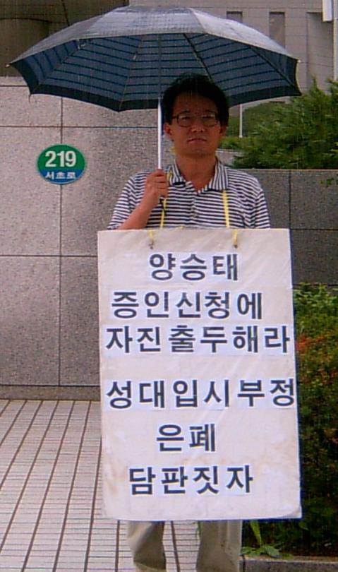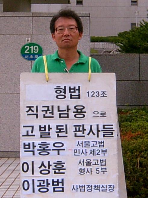 4. 서울중앙지법 지나가던 아저씨, 피켓 구호를 보더니 "판사놈들 다 죽여 버려야 한다."