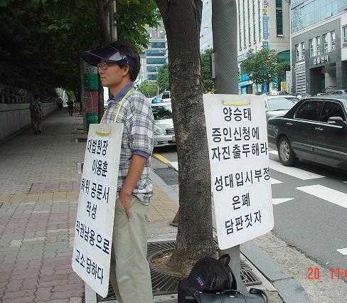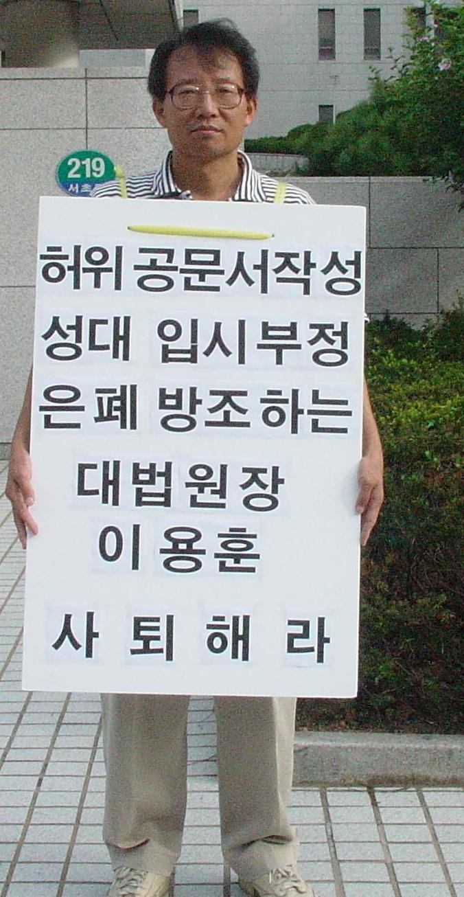 3. 대법원장 지시라며, 피켓을 전봇대에 걸어놓는 것이 불법이라며 구청 유인물을 준다. 허위공문서 작성 범법자, 이용훈이 그런 말할 자격이나 있나?