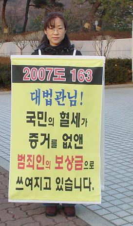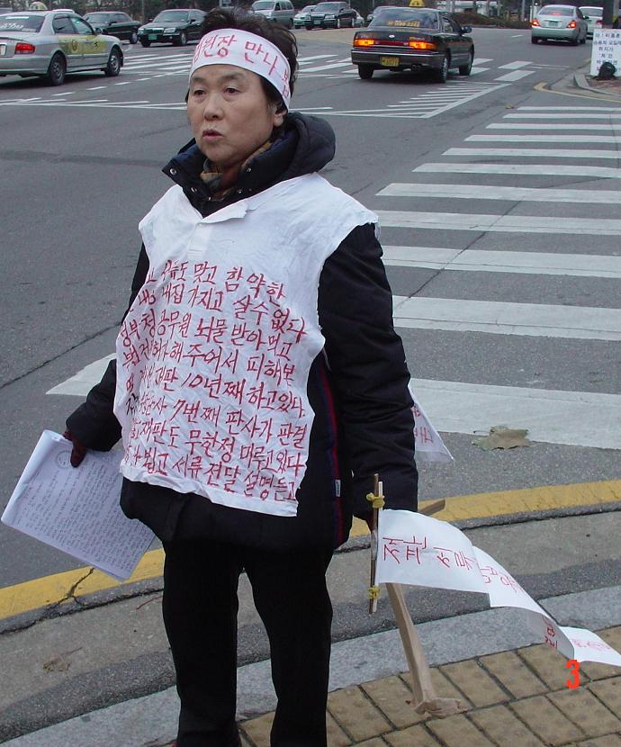 재판 다시 해달라며 어제부터 시위하는 아주머니