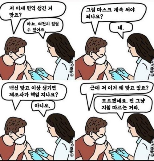 '백신, 부작용, 음모론' 등 지배계급 세뇌 용어들 주둥이에 달고 산다.