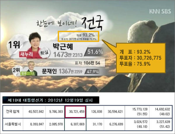 * 개표는 재외국민과 부재자 투표부터 하였고, 선관위 자료에 의하면 문재인이 박근혜를 앞섰다는데,