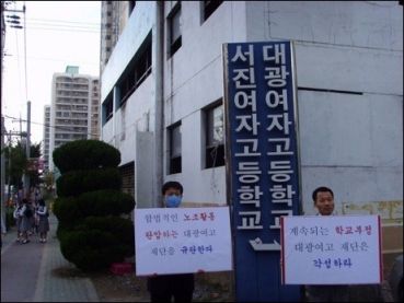 ▲홍복학원 대광여고 전교조 교사들이 이홍하 재단 이사장의 비리를 규탄하는 1인 시위를 벌인 장면.