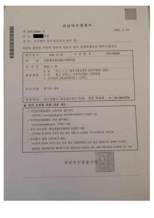 1. 전남여수 경찰서 수사결과 통지서