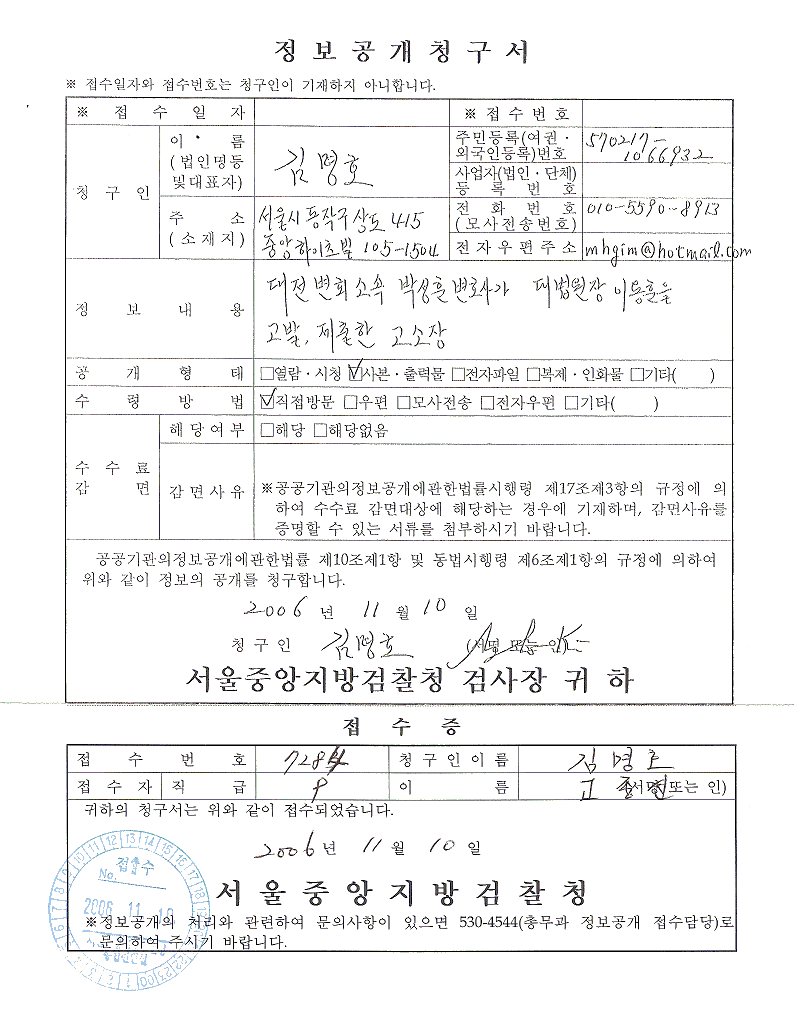 정보공개청구서 |