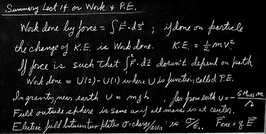 It is certain that in all the demonstrations that are made in a course such as this, not one has been remembered from the time when the author studied freshman physics. Quite the contrary: he merely remembers that such and such is true, and to explain how it can be shown he invents a demonstration at the moment it is needed. Anyone who has really learned a subject should be able to follow a similar procedure, but it is no use remembering the proofs. That is why, in this chapter, we shall avoid the proofs of the various statements made previously, and merely summarize the results.