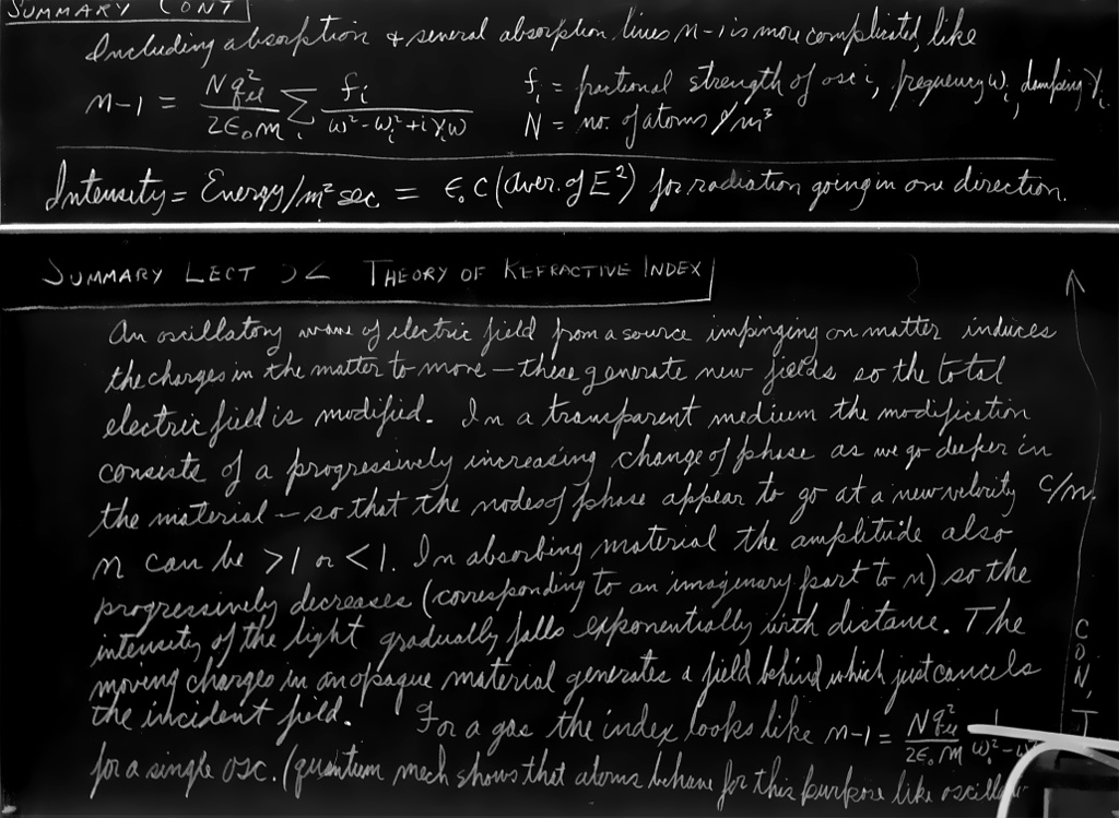 But, for a piece of glass, you might think: “Oh, no, you should modify all this. You should say it is retarded at the speed $c/n$.” That, however, is not right, and we have to understand why it is not.