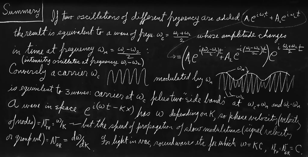 22.4.13: $\cos(\omega_1 t - k_1x)=\cos(\omega_1(t-\frac{k_1}{\omega_1}x)), \cos(\omega_2 t -k_2x)=\cos(\omega_2(t-\frac{k_2}{\omega_2}x))$ phase velocity를 얘기할 때, 헷갈린다.