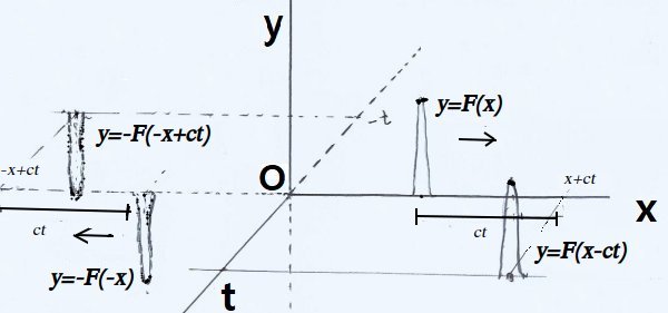 $y = F(x-ct)-F(-x-ct)$는 $y = F(x+ct)-F(-x+ct)$의 원점에 대칭