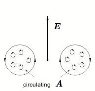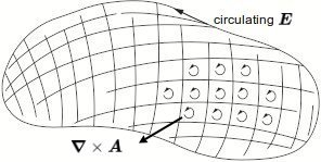 $B$는 vortex line 즉 helix 축, 롤러같은(맥스웰 인식과 일치 - 6.24) $E$는 water flow $v$처럼 vortex line bundle을 묶듯 가로지르거나 circulationg symmetrically 방사하는 기 라인 $B=\nabla \times A$는 수학적 표현일 뿐이고 실질적 기는 circulating $A$ ![]()