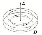 You will notice an interesting thing about this set of four equations. It can be separated into two pairs. The electric field $\FLPE$ appears only in the first two, and the magnetic field $\FLPB$ appears only in the second two. The two fields are not interconnected. This means that electricity and magnetism are distinct phenomena so long as charges and currents are static. The interdependence of $\FLPE$ and $\FLPB$ does not appear until there are changes in charges or currents, as when a condensor is charged, or a magnet moved. Only when there are sufficiently rapid changes, so that the time derivatives in Maxwell’s equations become significant, will $\FLPE$ and $\FLPB$ depend on each other.