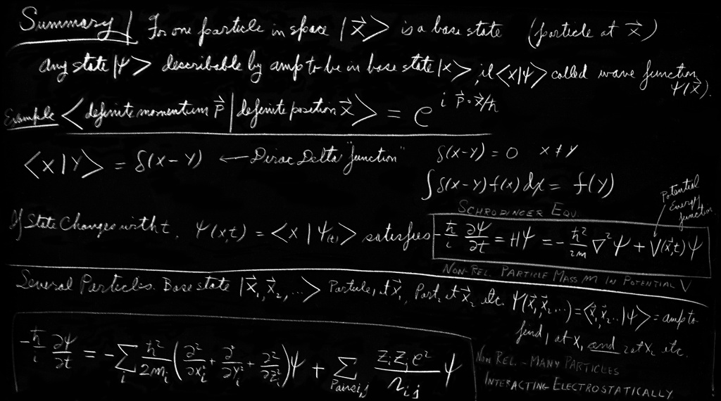 As we go into the subject of this chapter you will notice that we are breaking a rule we have always followed in the past. Whenever we have taken up any subject we have always tried to give a more or less complete description of the physics—showing you as much as we could about where the ideas led to. We have tried to describe the general consequences of a theory as well as describing some specific detail so that you could see where the theory would lead. We are now going to break that rule; we are going to describe how one can talk about probability amplitudes in space and show you the differential equations which they satisfy. We will not have time to go on and discuss many of the obvious implications which come out of the theory. Indeed we will not even be able to get far enough to relate this theory to some of the approximate formulations we have used earlier—for example, to the hydrogen molecule or to the ammonia molecule. For once, we must leave our business unfinished and open-ended. We are approaching the end of our course, and we must satisfy ourselves with trying to give you an introduction to the general ideas and with indicating the connections between what we have been describing and some of the other ways of approaching the subject of quantum mechanics. We hope to give you enough of an idea that you can go off by yourself and by reading books learn about many of the implications of the equations we are going to describe. We must, after all, leave something for the future.