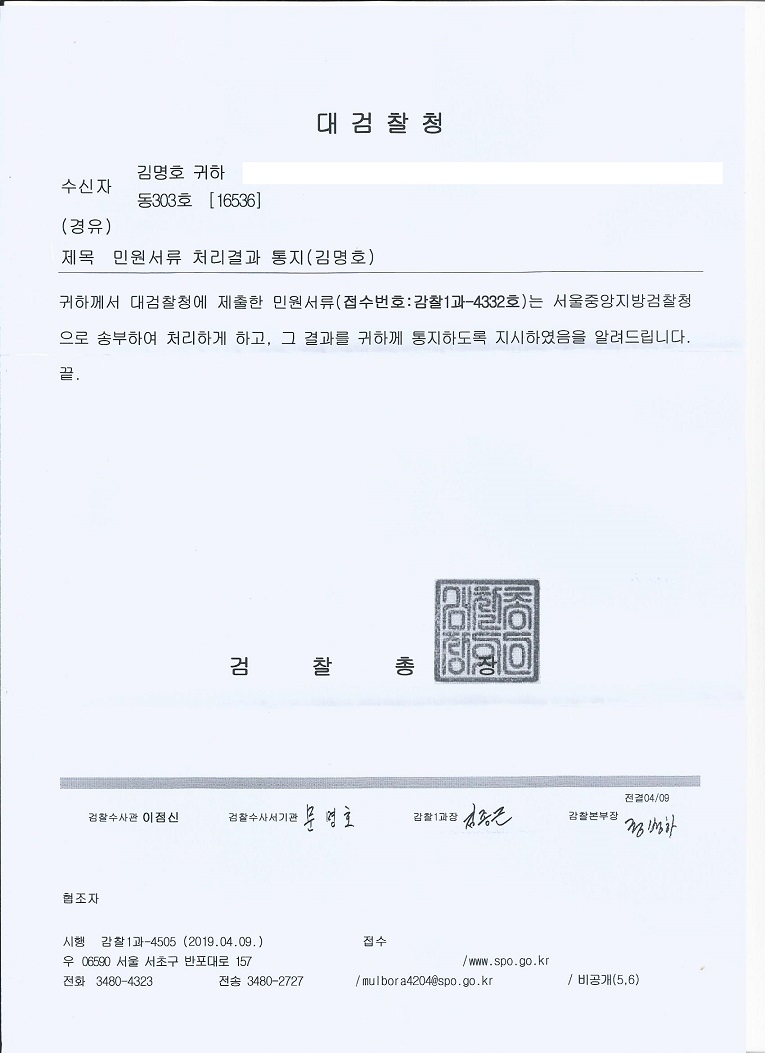 항상 최선을 다하는 서울중앙지방검찰청 국민신문고가 되도록 노력하겠습니다. 감사합니다.