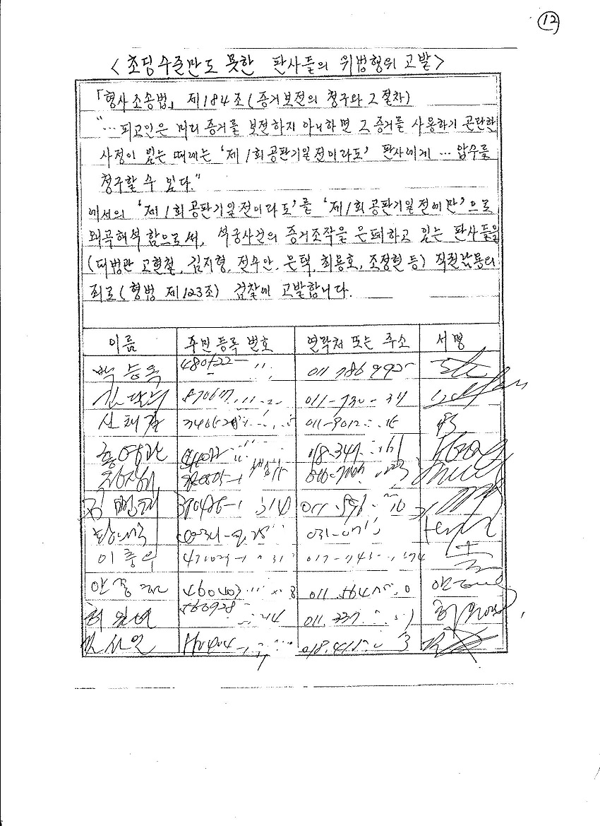 3. 2012.7.5일자 대법원 규탄 일지(* 순위에서 밀렸는지 대법관보다 한 단계 낮은 헌법재판관으로 임명됨)