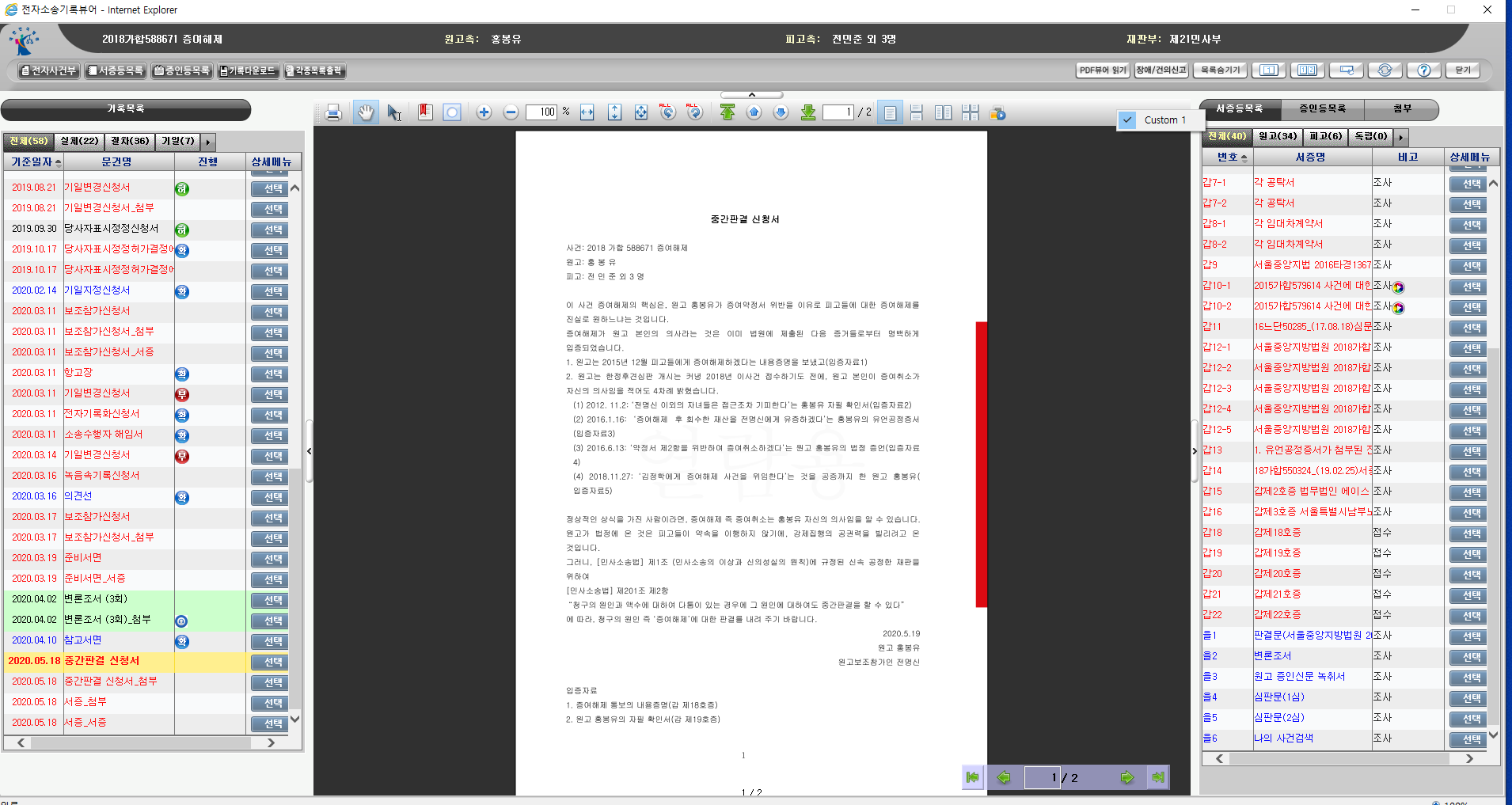 피고측 변호사 이현곤이 '당사자본인신문 신청서'(26일), '이의신청서'(27일) 제출한 것 밖에 없는데...