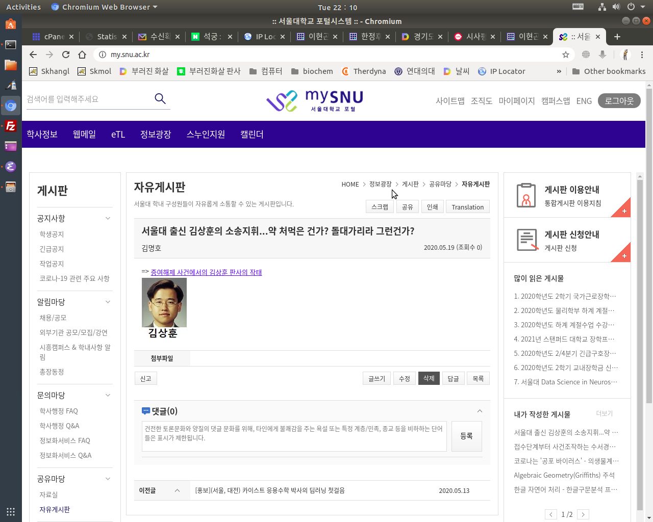 아~ 글쎄, 재판장이라는 김상훈 새끼가 김정학 변호사에게 물어보란다(참조: 4.2일자 녹취록)