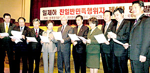 △ 28일 오전 서울 여의도 국회 의원회관 대회의실에서 `민족정기를 세우는 국회의원모임' 의원들이 708명의 일제하 친일반민족행위자의 명단발표에 앞서 이야기를 나누고 있다. 이종근 기자root2@hani.co.kr