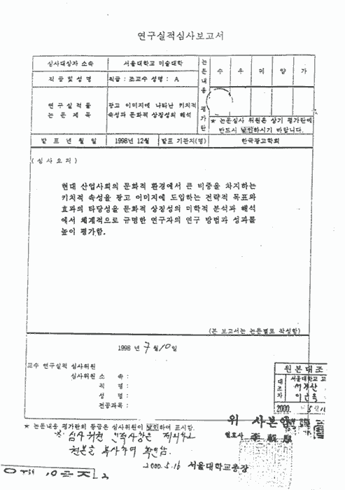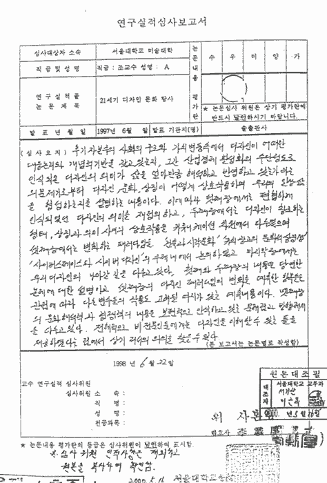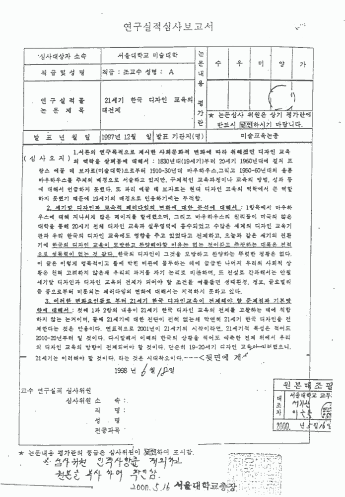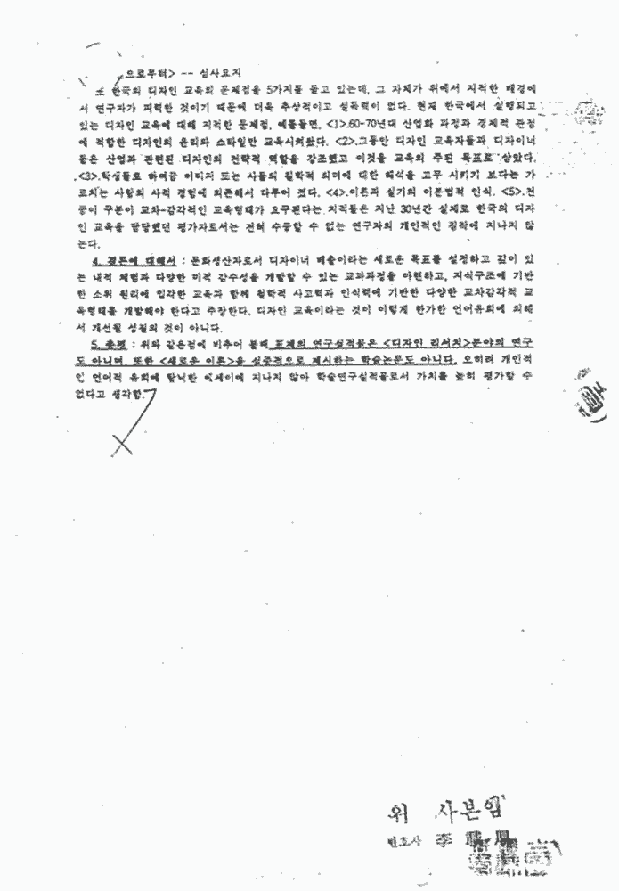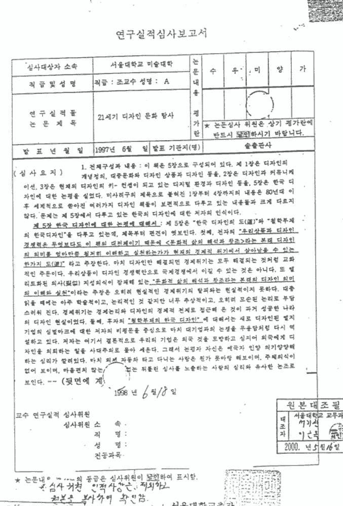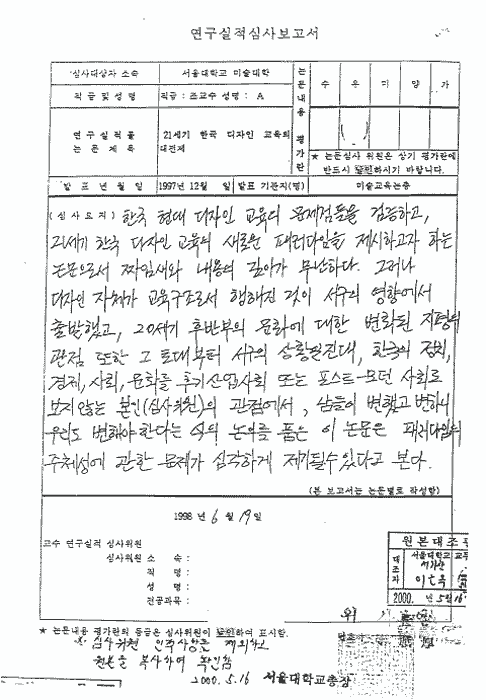 현 미대학장 권영걸 교수 필적과 유사)