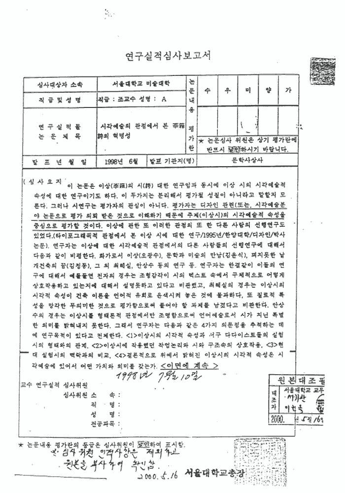 시각예술의 측면에서 본 이상시의 혁명성 (적격, 100%)