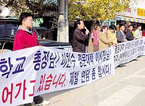 사진/ 지난 11월15일 천안대 앞에서 경문대 문제해결을 촉구하는 총장면담 요청 시위가 벌어졌다.
