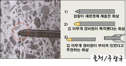 맞았다는 피해자 박홍우나 당시 목격했던 경비원 김덕환의 진술에 의하면 부러진 화살이어야 하는데 멀쩡한 화살 3개로 유죄 증거로 삼았다. 이건 잘못된
