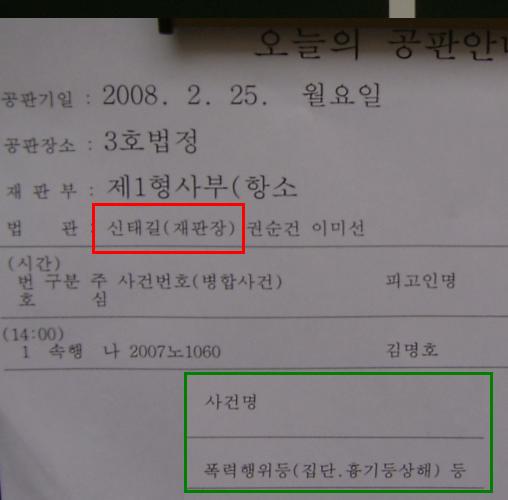 재판장 판사: 신태길 기일: 2008. 2. 25. 14:00