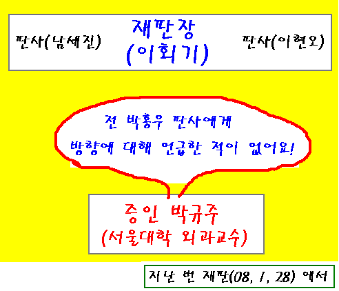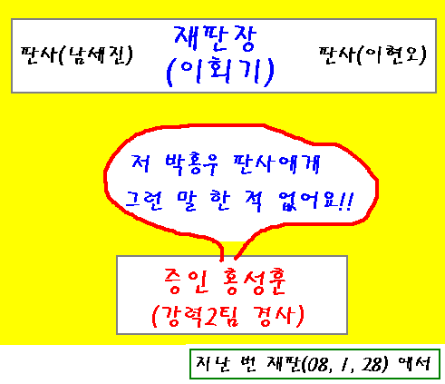 이런 말을 했고, 홍성훈 증인은 나와서 이런 말을 했다 **(중략)*** (박훈 변호사를 보면서) 변호인!! 문서송부 촉탁을 해서 몇 개를 보냈는데 그 중 하나는