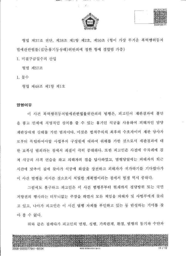 | 최종 형량 | 집행유예 | 4년 징역 |