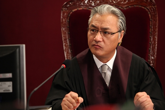 % 항소심에서 갑자기 사직한 이회기 재판장 뒤를 이어 재판을 진행한 신태길 부장판사(문성근 분).