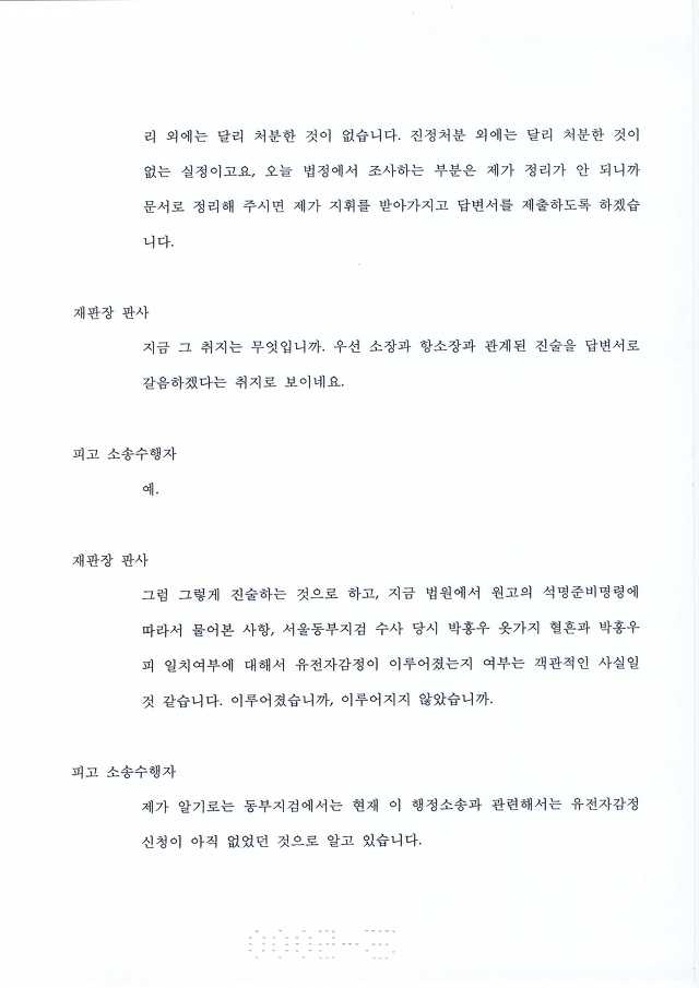 누가 행정소송 관련한 감정 물어 봤어? 석궁사건 수사 당시 유전자 감정 했는 지 물어 봤지! 공직자라는 쓰레기들이 어떻게 하면 상전인 국민에게 사기칠 궁리나 하고 자빠져 있기나 하고. |