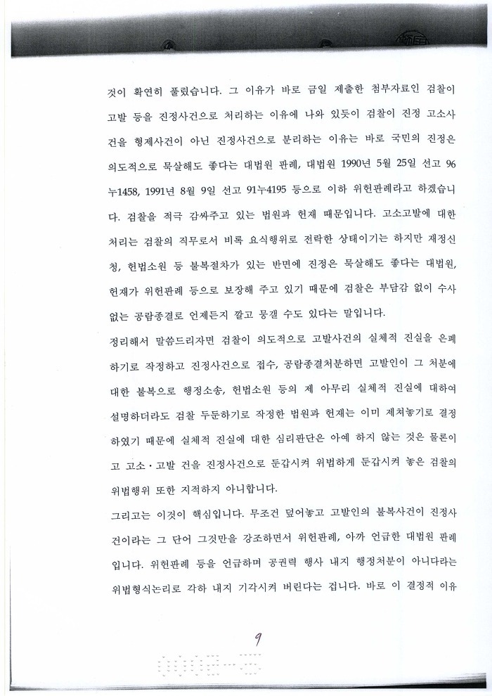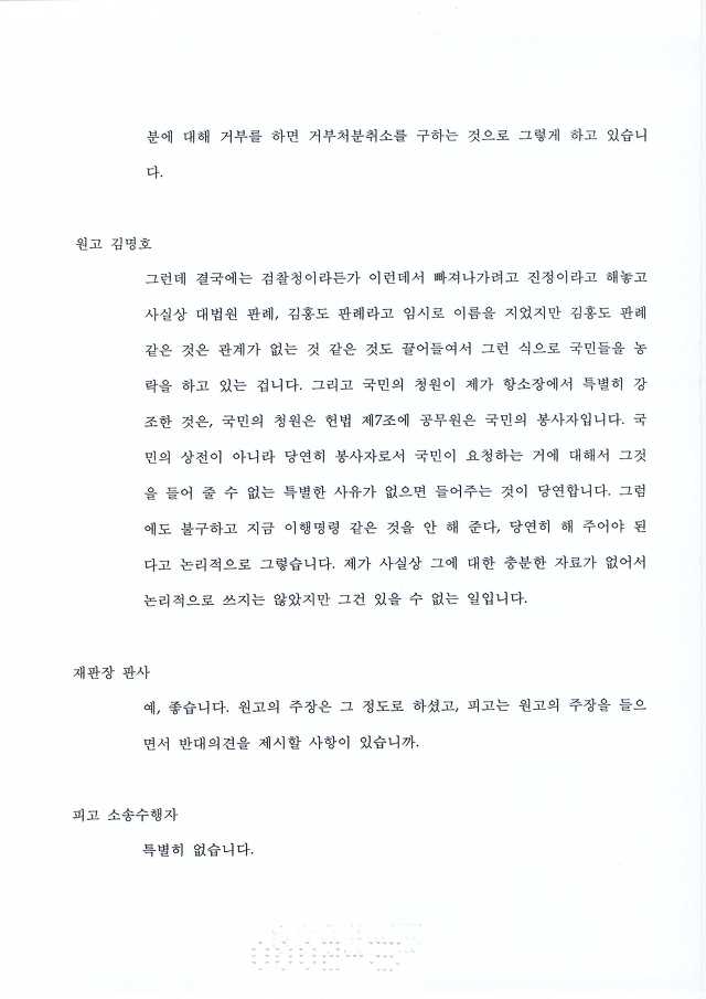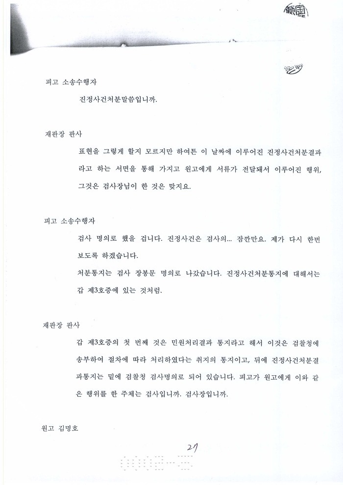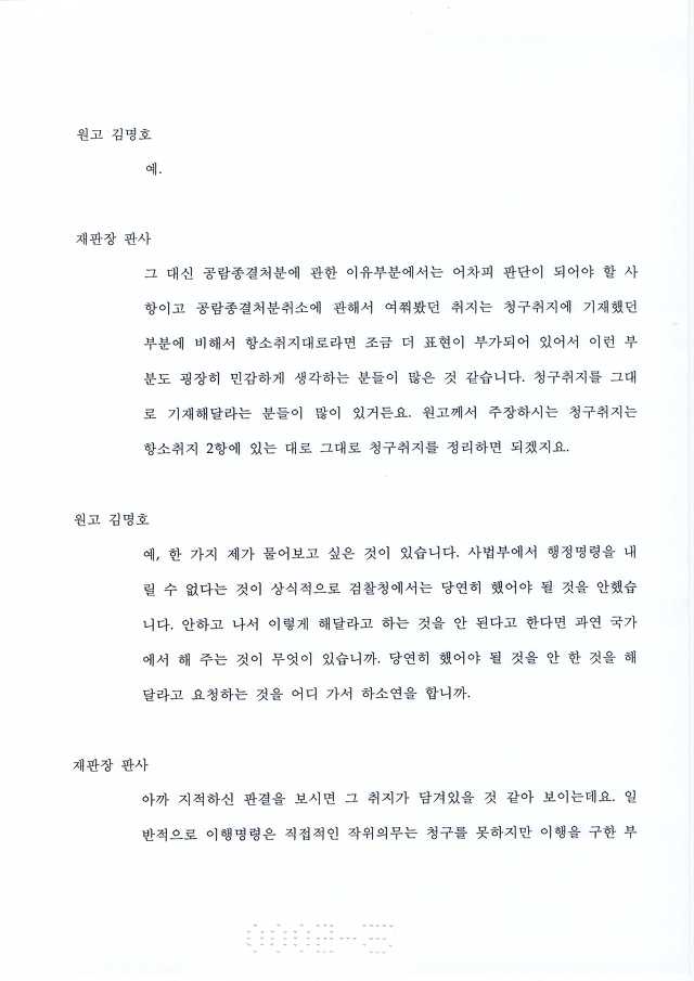 검찰이 인정하고 재판부가 확인하였다는 것이 이 행정소송의 성과 !