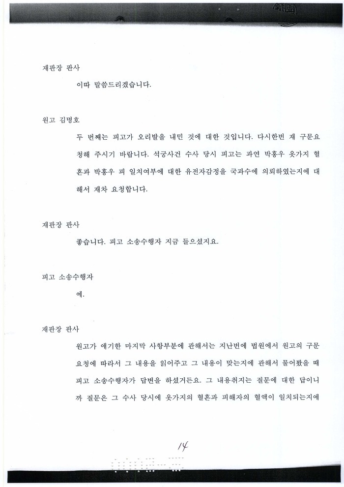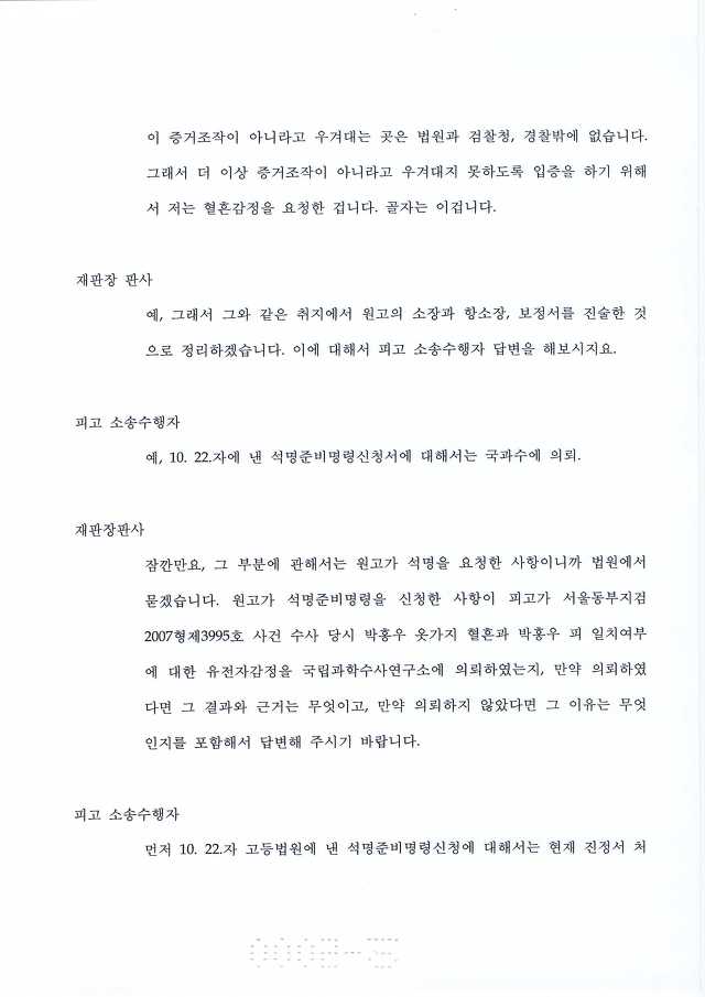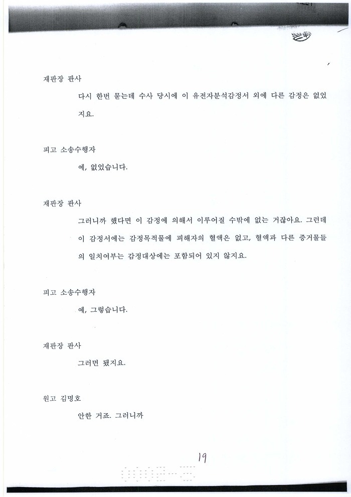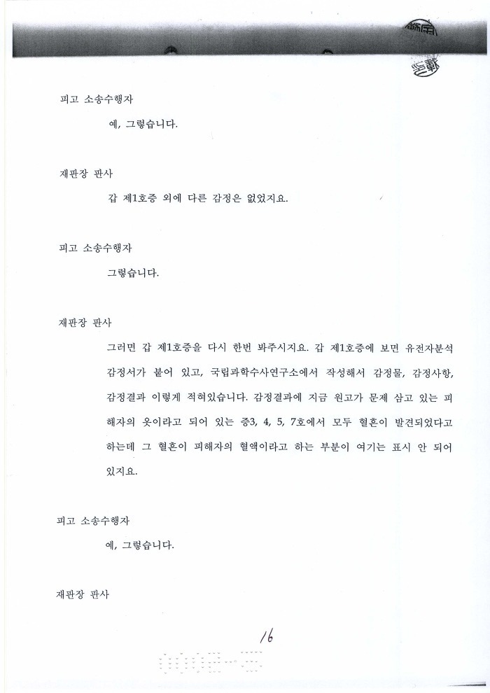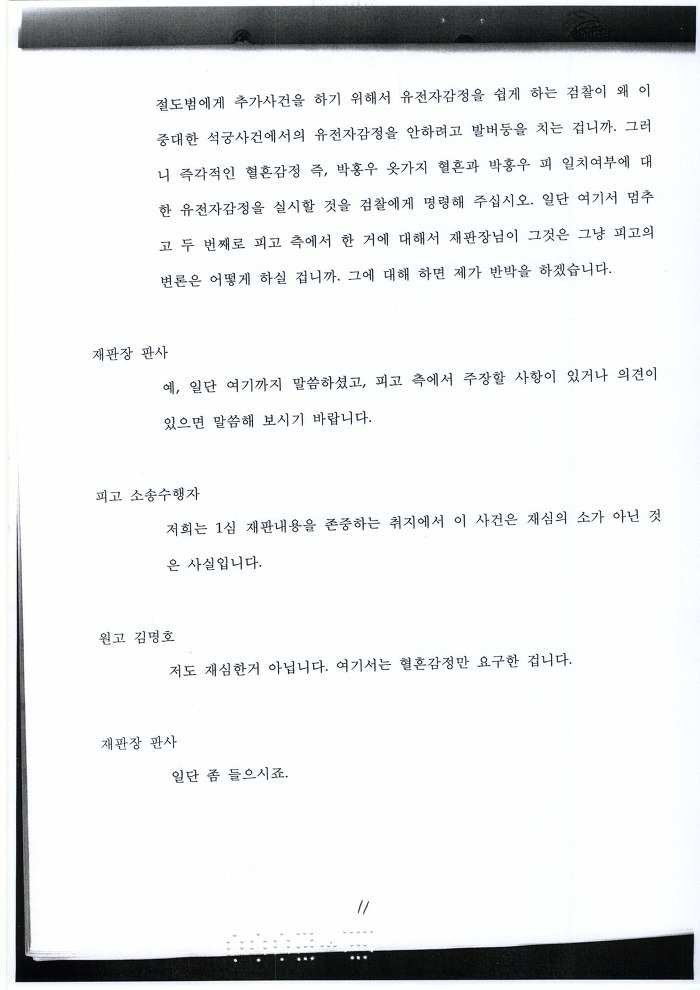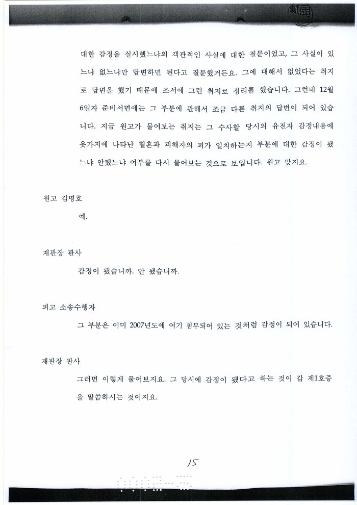 국과수에 유전자 감정의뢰 보낸 목적이 뭐냐? 혈흔 일치 여부 판단하려고 하는 거 아냐?