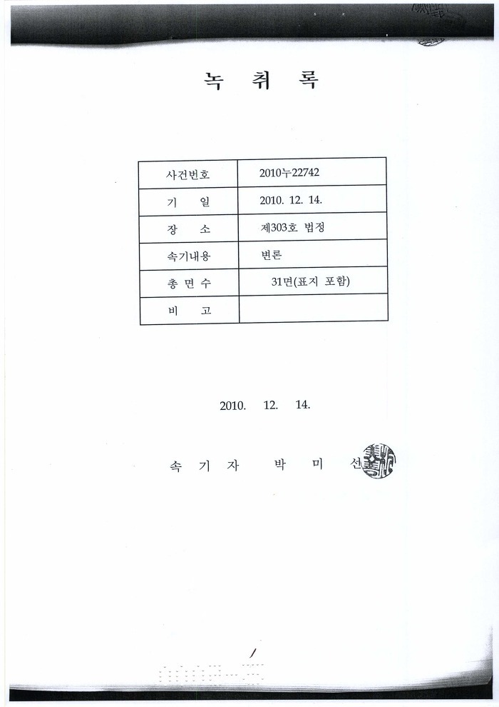 <서울고법 2010누22742> 2010. 12. 14 일자 변론조서
