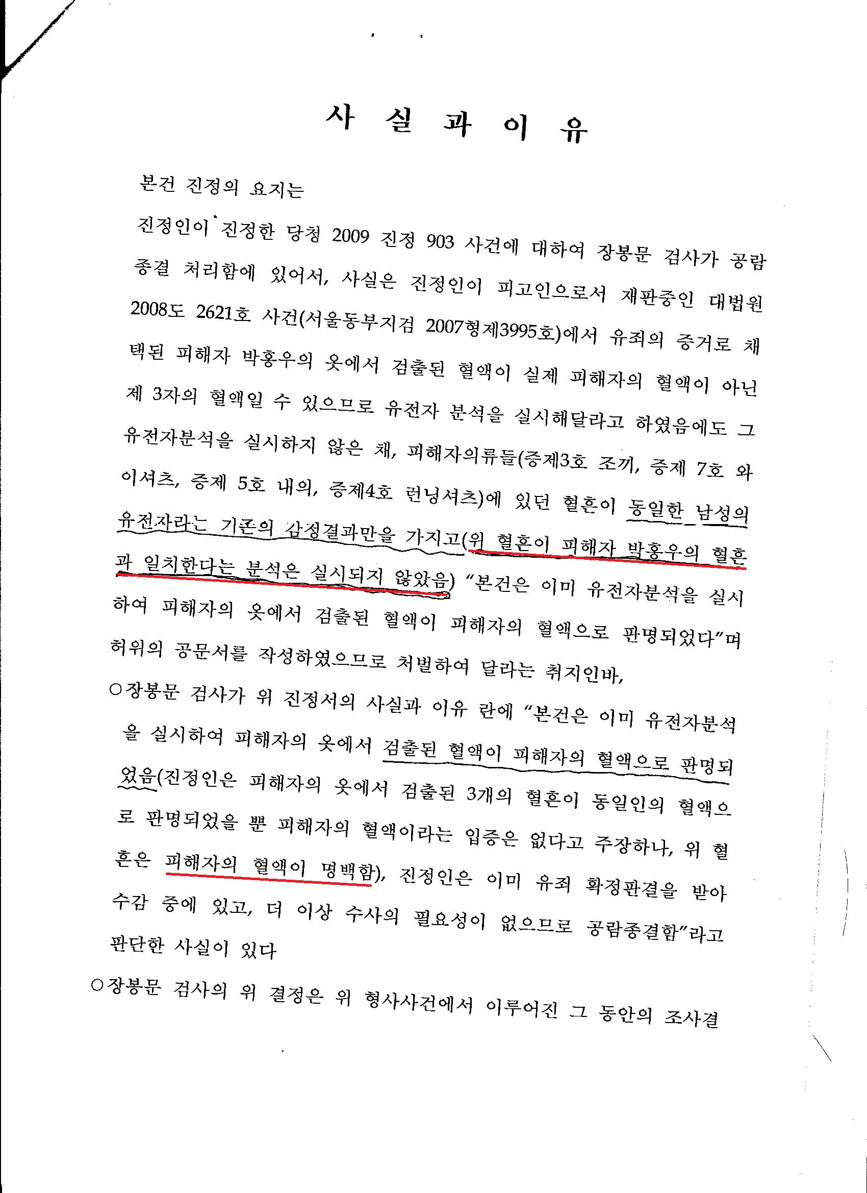 (* 증거조작의 주 공모자 서울동부지검은 실시하지도 않은 혈흔검증도 하지 아니한 것을 인정하고서도