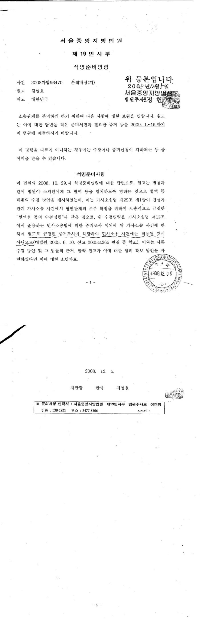 2008.12.08 원고 김명호 혈액검증및감정신청 제출